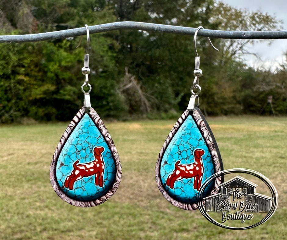 Show Goat Earrings - Tear Drop Shape - Multi Breed/Background Available